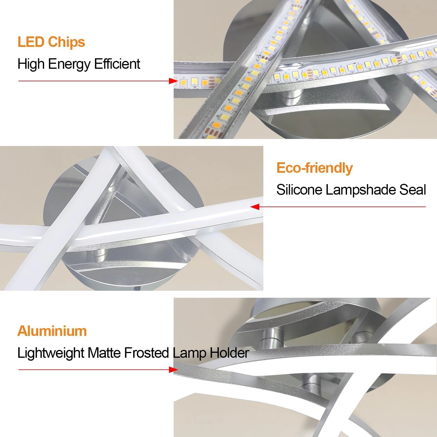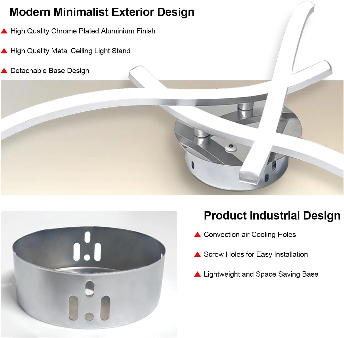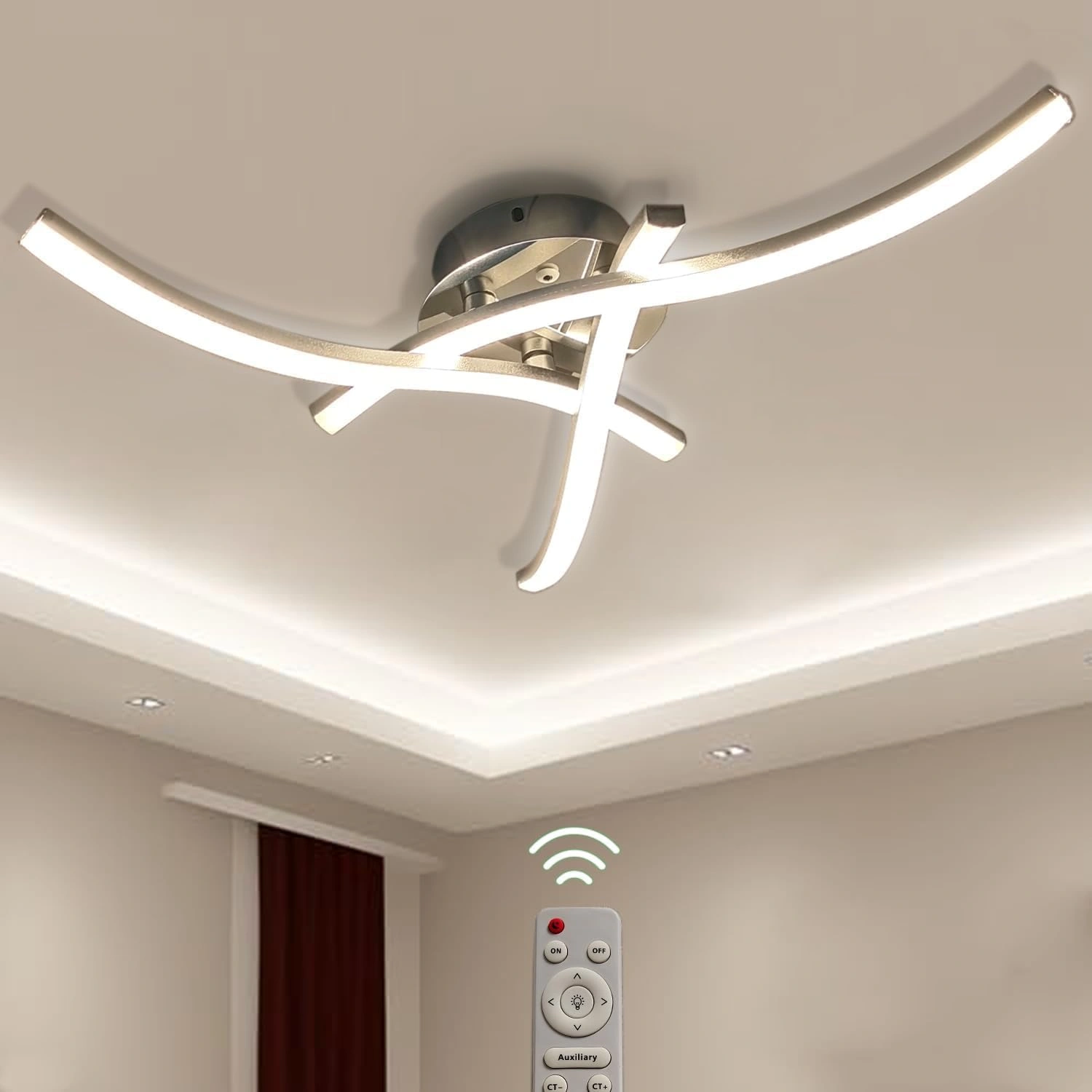 22W 2200LM Wave Design Chrome Finish Metal LED Lamp, Boards Fixture Lighting for Living Room, Bedroom – 3 Way Crossed LED Light