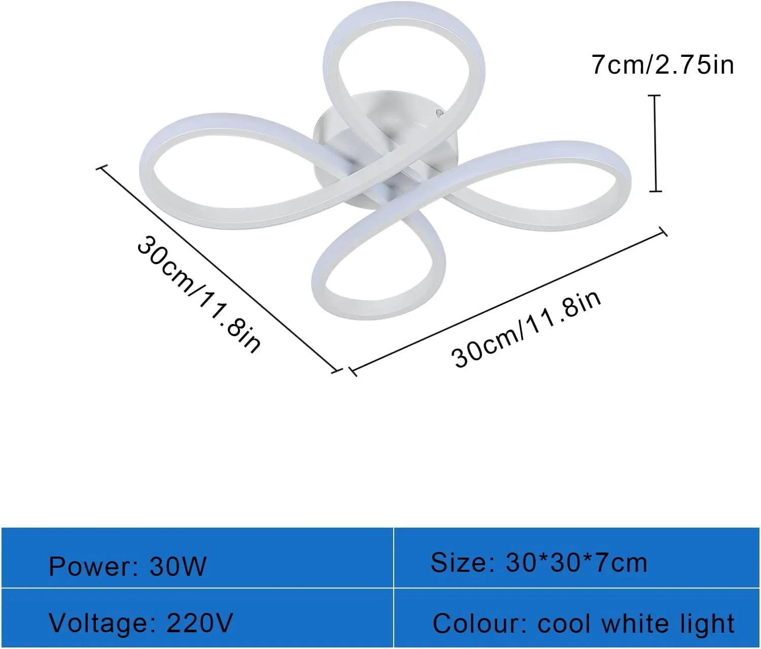 30W Modern LED Ceiling Light – Creative Flower Shaped LED Ceiling Lighting Fixture for Living Room Bedroom – White Cool White