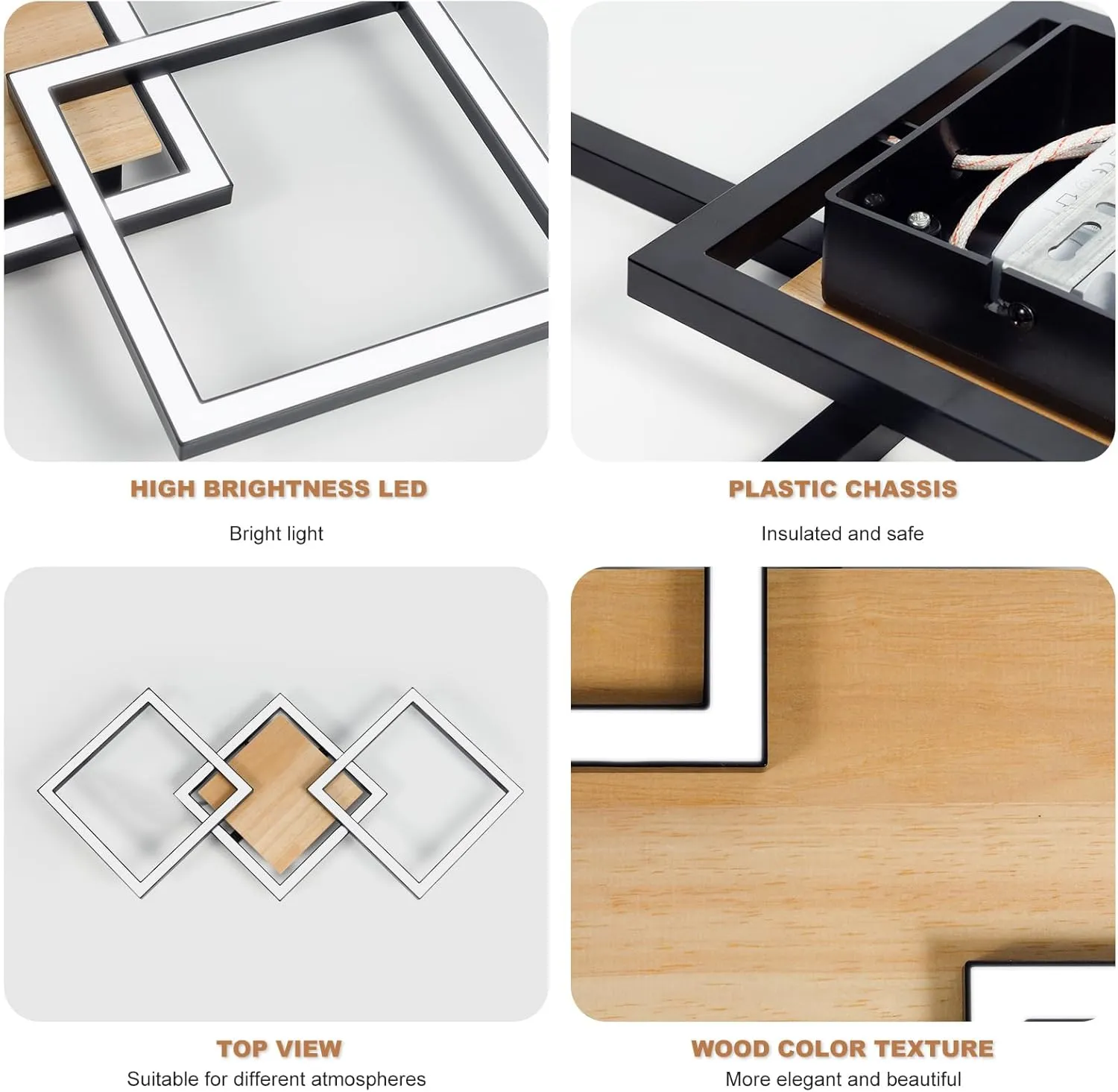 - Durable Materials: Ceiling lights for bedroom housing is made of high quality acrylic and wood, surface painting, smooth and flat, lampshade is made of acrylic, built-in LED chip light source, high light transmission, no glare, no flicker, even and stable light.