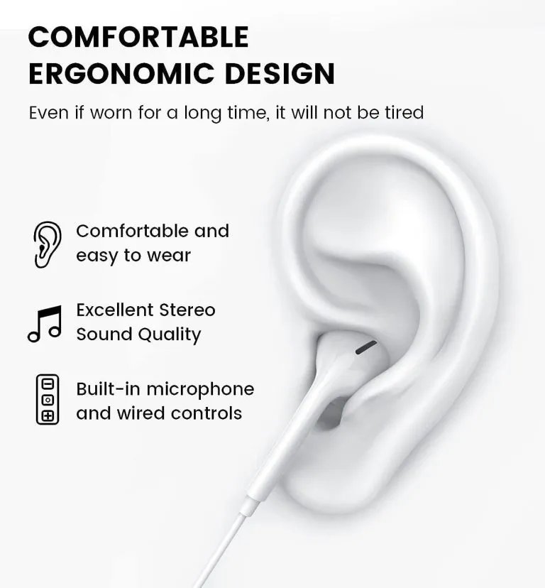 - 【Ergonomic In-ear Headphone】: Ergonomically in-ear design delivers more powerful and clear sound, allow you to have clearer phone calls, enjoy excellent quality music streaming and gaming experience, comes.