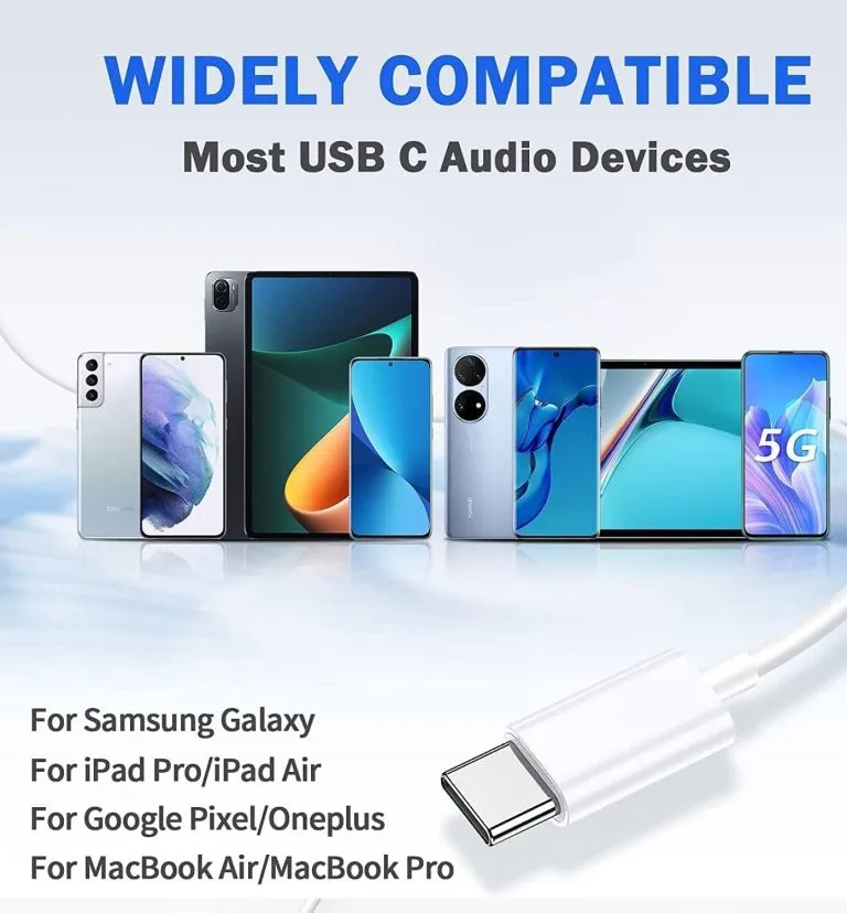 - 【Wide Compatibility】: APPLE: iPhone 15,15 Pro,15 Pro Max, iPad Pro 2021/2020/2018, iPad Mini 6th Gen, 10.9″ iPad 10th Gen, 11″ iPad Pro 4th/3rd/2nd Gen, MacBook Pro 14″/16″, MacBook Air (M1) — Galaxy S23/S22/S21/S21+/S21 Ultra/S21/S21 Ultra/S21 FE/S20/ Galaxy Tab S8/S7/S6/S5e, A53/A54/A33/A34, Google Pixel 6 6 Pro 5 4a 3a XL 4 XL 3 2 XL and other devices with USB C audio port.